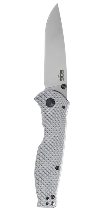 SOG Knives & Tools Flash II FL, Folding Knife, 3.4" Drop Point Blade, 8Cr13MoV Blade Steel, Straight Edge, Satin Finish, Silver, Silver Stainless Steel Handle, Thumb Stud Opener, Frame Lock SOG-14-18-01-57